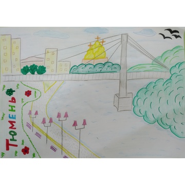 В длинном название - название рисунка с указанием МЕСТА ТЮМЕНИ, изображенного на работе.