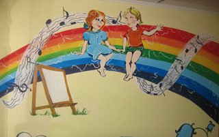 - просторная игровая, оборудованная сухим бассейном, яркими модулями
