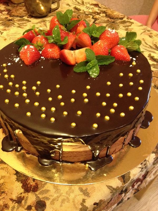 Тортик готов, я поливала шоколадной глазурью, в оригинале глазурь из белого шоколада
