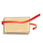 Положите ленту на стол. Отметьте ее середину. Положите на середину будущий альбом. С помощью клея прикрепите ленту на внешние стороны альбома.