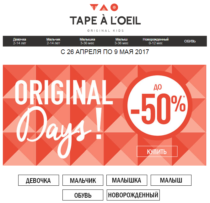 скидка 50% на вторую вещь (меньшую по стоимости) из каталога (Основы гардероба для Малышей) Newborn Essential (только из этого каталога!)