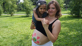 Я решила готовиться к родам и начать заниматься физкультурой для беременных. Записалась на занятия в СК Дорожник. Ведет занятия акушерка, дама пожилая и обстоятельная. Каждый раз перед занятиями и после них нам меряют давление и слушают сердечки наших крошек. А еще можно послушать сердечко в животе у соседки (вот где еще такое может быть!? Точно не на приеме у врача!). Сами занятия весьма не обременительны, но нагрузка чувствуется. Упражнения делаем на суставы, растяжку и выполняем дыхательные упражнения. Учимся задерживать дыхание на 40 секунд циклами по 3 раза, репетируем потуги. Упражнения на больших мячах просто приятны.