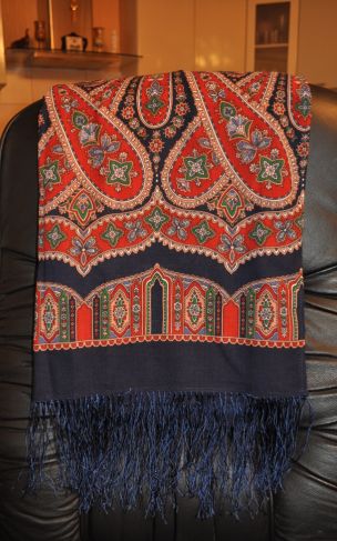 . У меня такой же шерстяной платок, только расцветка зеленая. Мама заказывала по каталогу из Иваново. Платки хорошие, особенно шерстяные, на ощупь тонкие, а греют