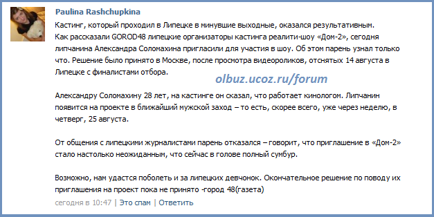 Всем привет!!!Ребята спасибо большое за поддержку и пожелания нашей паре,очень приятно слышать теплые и приятные слова!!!Теперь хочу обратиться к ребятам и девчатам которые оскорб*яют,нелестно выражаются в мой адрес и всячески пытаются меня обидеть!!!Вы на самом деле можете не стараться и не утруждаться писать мне оскорбления!!!Я на проекте нахожусь уже практически год и привыкла к всяким высказываниям в мой адрес,свое внимания обращаю только на хорошие коменты,все остальные пролетают мимо ушей и глаза и не удостаиваются моего внимания!!!То что вы про меня пишете,говорит об обратном что я далеко вам не безразлична и вызываю у вас бурю эмоций и меня это радует,а какие эмоции это уже ваше дело главное что обо мне говорят и значит я личность!!!Только вы одно запомните те люди которые говорят про меня гадости,изнутри пропитались грязью и желчью которая так и вылетает в виде слов в мой адрес!!!Человека из грязи вытащить можно,а вот грязь из человека никогда,получается пропитавшись грязью в этом возрасте вы будете жить с ней всю оставшуюся жизнь, я в таком случае могу вам только посочувствовать!!!Так что если вы хотите что бы я пересмотрела свое отношения к вам,постарайтесь пересмотреть свое отношение ко мне!!!Всем желаю успехов и скорейшего очищения от грязи,хотя это так не просто сделать!!!