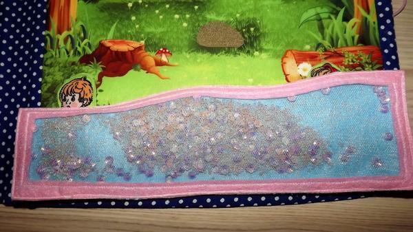 Дорогие друзья, я приготовила для вас и ваших малышей сказку Гуси-Лебеди. Теперь книгу можно не только почитать, но и поучаствовать в ней, активно перемещая героев сказки со странички на страничку. Все элементы съемные на липучках. Речка и яблонька откидываются и крепятся в нужный момент на страничку. Яблонька-матушка научит считать, сравнивать понятия больше-меньше, сортировать по цвету. Молочная река-кисельные берега натренирует пальчики в перебирания бисера и пайеток. Печка смело спрячет и Машеньку, и Ванечку, и пирожки. Сзади вместительный карман для съемных элементов. На обложке по центру липучка, можно поместить любого героя или солнышко например.