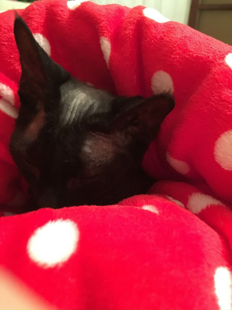 я от него даже не ожидала, приготовила одеяла белье менять, прихожу, он залез как в домик и лежит