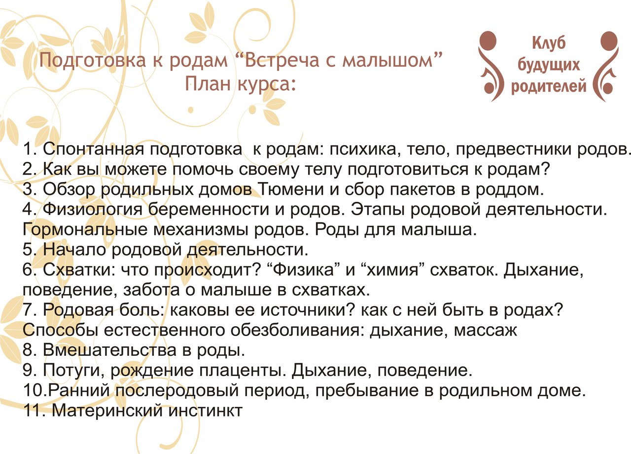 - курсов дородовой подготовки в "Клубе будущих родителей" Ссылка (@club_bud_rod)