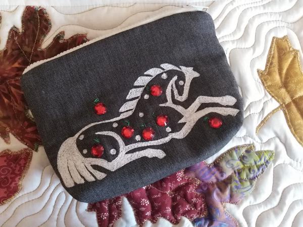 Косметичка "Конь в яблоках". Стразы-яблочки, вышивка. Цена 600 руб.