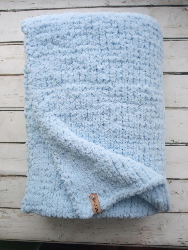 Плед из гипоалергенной пряжи — это мягкая детская ниточка, очень приятная на ощупь.
