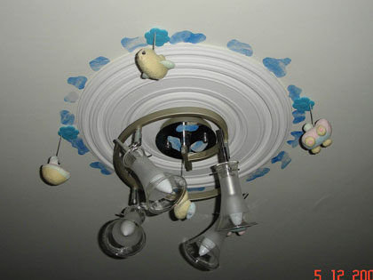 вокруг люстры, мишками отделала бордюр.