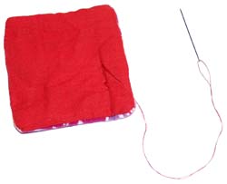 Передвиньте предмет внутри подушечки в центр и сделайте шов вдоль всего внутреннего периметра каркаса,
