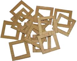 Сторона внешнего квадрата 6 см., внутреннего 4 см. Макетным (или канцелярским) ножом аккуратно вырежьте каркасы по контуру.