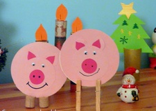 Поделка из ватных дисков "Свинка пускает снежинки"