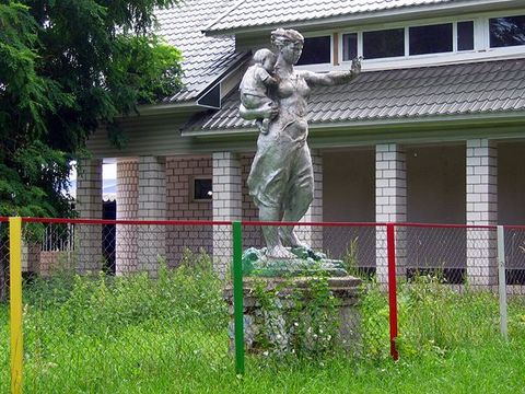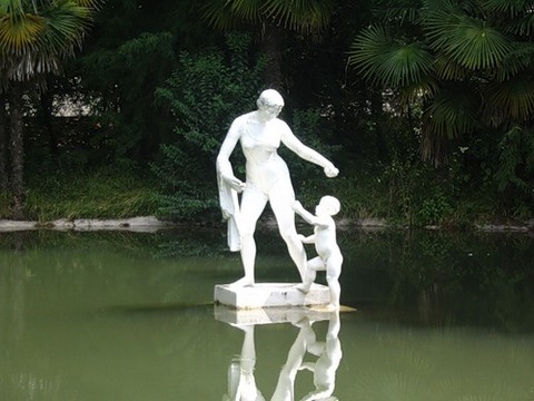 Скульптура у фонтана на территории санатория РВСН, Абхазия