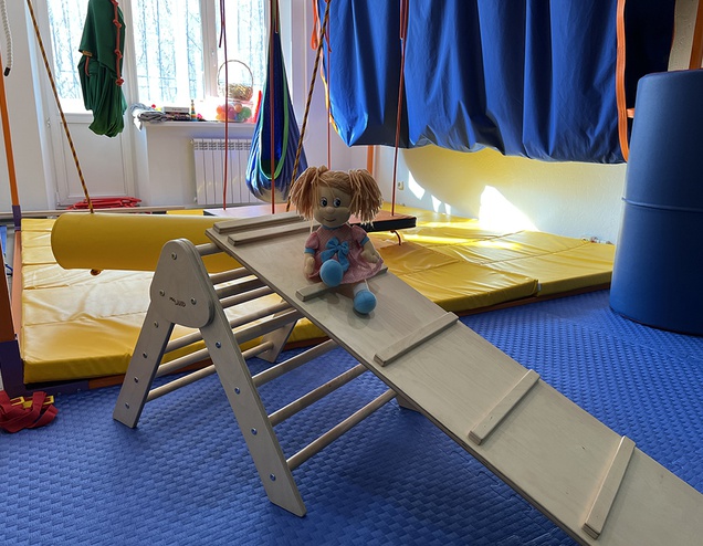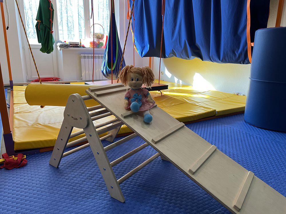 - специальное подвесное оборудование, максимально направленное на улучшение вестибулярной и проприоцептивных сенсорных систем и последующей нормализацией всех остальных;