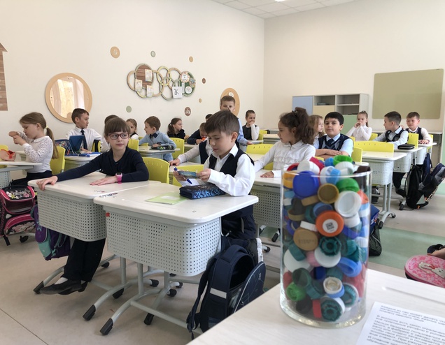 Экологический урок состоялся и у второклассников тюменской школы № 94. Ребята на протяжении месяца собирали крышки от пластиковых бутылок, чтобы принять участие в акции "Добрая крышечка", которую проводит семейный проект "Создавая будущее".