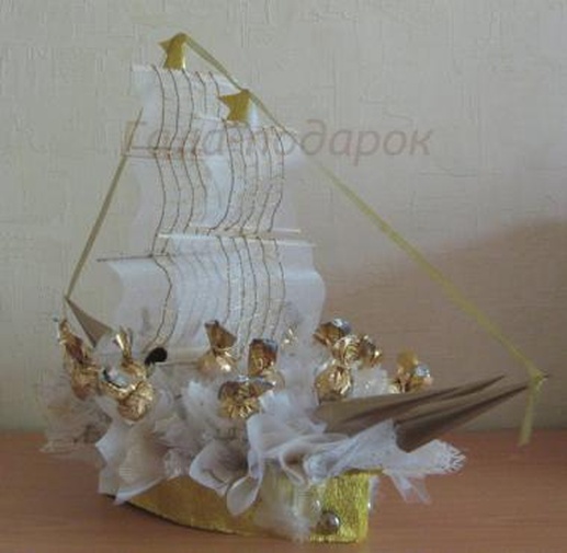 Корабль Свадебный №2 (бело-розово-голубой) (2)