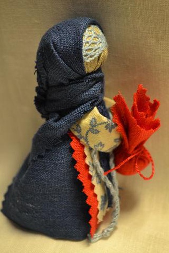 Подорожница - Куколка очень маленькая, 3-5 см, должна легко помещаться в ладони или в кармане. Делается безшитьевым способом. Эта кукола - оберег путнику в дороге, в узелке у куклы - крупа. Эту куклу должен держать только тот, кто делал и для кого делали, можно трогать другим, если кукла будет в пакетике. Во время всей поездки куклу держать в руке, можно сделать петлю и повесить/закрепить на пальце.