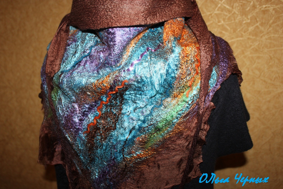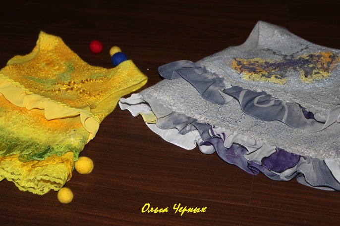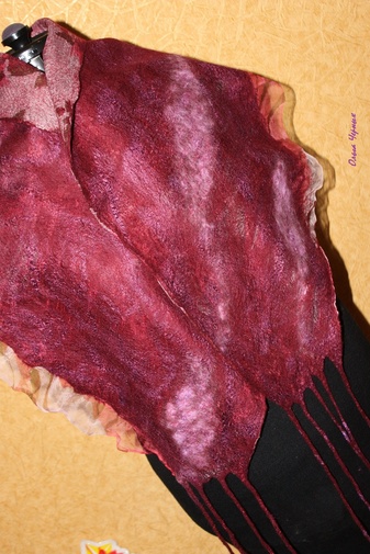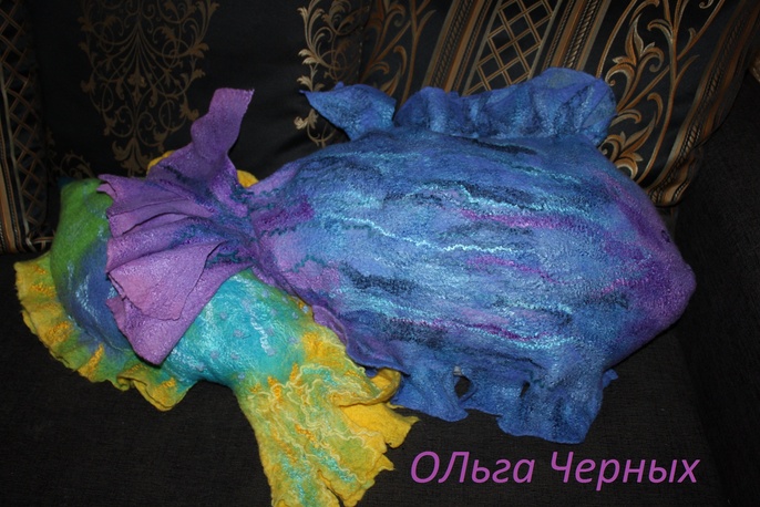 Авторская ручная работа.Изделия изготовлены из шерстки,шелка,шифона,различных декоративных волокон.Отлично все стирается и гладится.