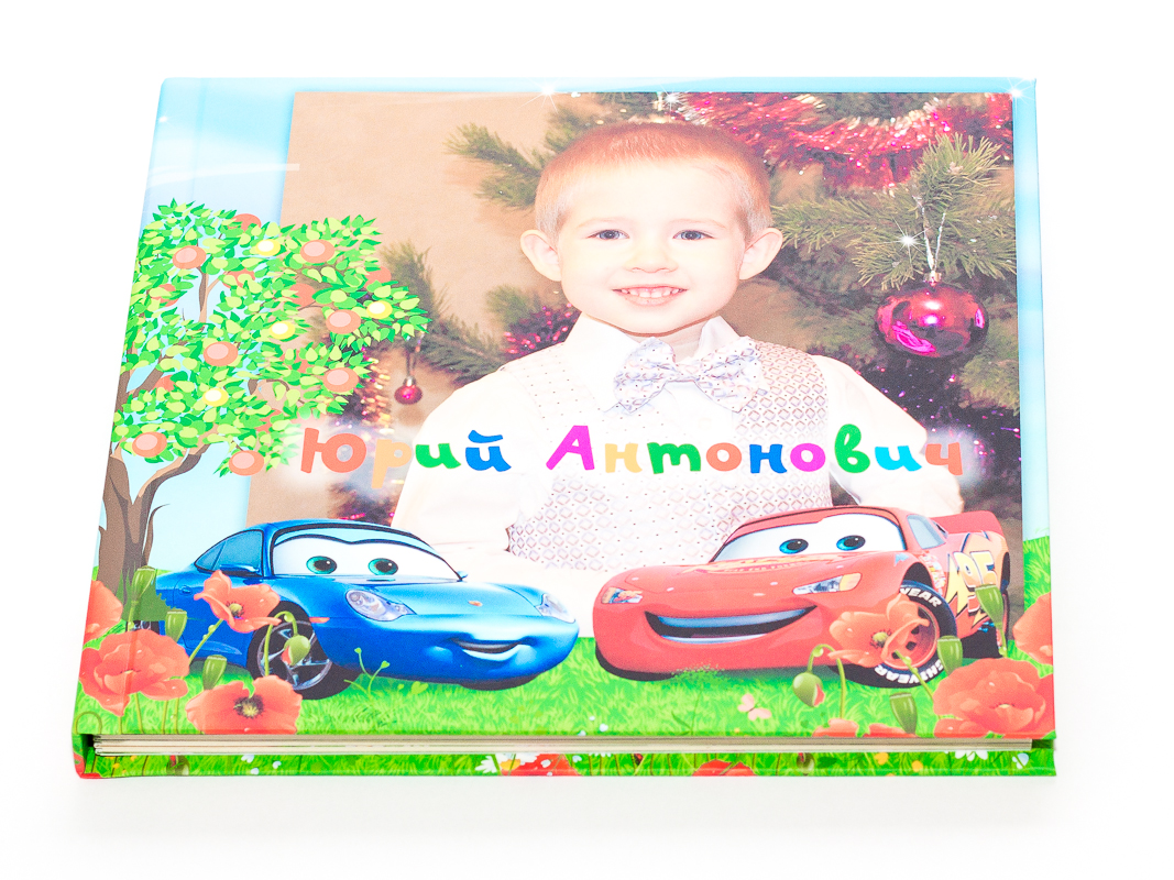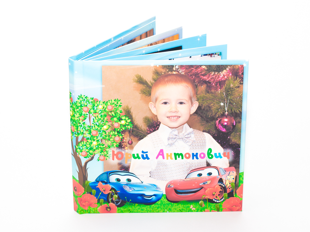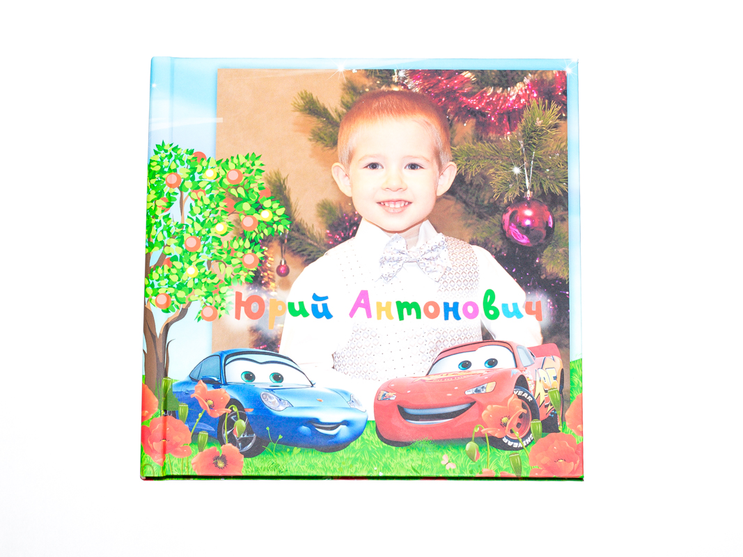 Детская фотокнига размером 20х20 см, тип "Стандарт Плюс" с фотообложкой, 6 разворотов на сатинированной фотобумаге. Обложка фотокниги ламинирована матовой пленкой, развороты - глянцевой плёнкой.