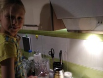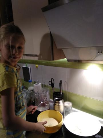 Вот оно мамино счастье , мое солнышко. Каждый день она меня радует хорошими оценками в школе, спортивными достижениями, творческими успехами. Но сегодня особый повод - дочка сама испекла оладьи и накормила всю семью. Теперь можно в выходной открыть глаза, попросить Стасю испечь оладушки, и понежиться в кровати еще час или полтора))) Кстати,получилось очень-очень вкусно, и пусть до плиты еще не достает (забирается на стул), и на кухне беспорядок, зато какой результат!!!
