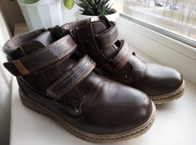 деми ботинки Чиполлино, коричневые, 35 размер, по стельке 21,5 см., кожзам, внутри утеплитель байка. Требуется проклейка правого ботинка в районе пятки - кожа треснула, но не насквозь (см.фото). Цена 150р.