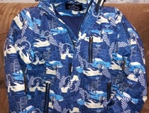 Куртка: подклад - хлопок, утеплитель - тонкий синтепон. Капюшон отстёгивается. Рукава с защитными трикотажными манжетами. Низ куртки с регулировкой-утяжкой.
