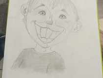 Дистант. Развлекаемся как можем, и даже друзей подключаем. Задание по ИЗО - нарисовать карикатуру известного человека (но не политика). Хорошо, что в нашей семье есть художники) Кто угадает? Похож?