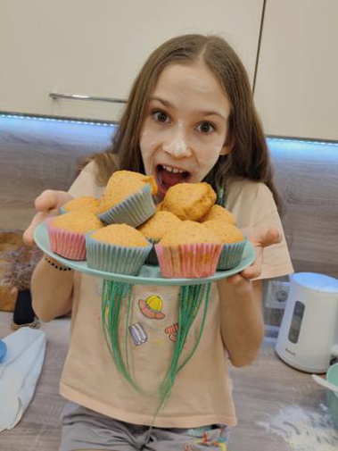 Счастливый 9ый 🧡 Кексики заказывали? Чем порадовать маму? Выпечкой конечно! Чем порадовать ребёнка? Выпечкой конечно! В чем разница? Мама любит кушать кексики, а дочь их готовить. Идеально!)) Пугает: заканчивай фотосессию, а то все съем))