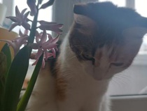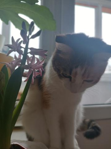 Сегодня расцвёл гиацинт. И наша Злата тоже решила стать цветочком:) рыженьким:)