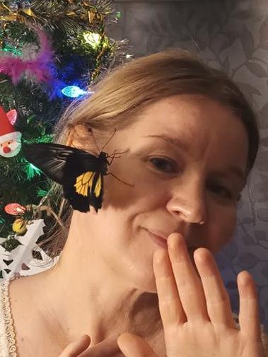 Сегодня у нас продолжается бабочкин день! Были не живые, а сегодня живые! Ох, и щикотно:))))