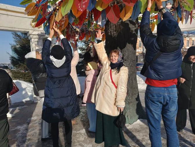Праздничный день 23 февраля выдался для гостей города Тюмени и для тюменцев солнечным, тёплым и познавательным! А всё почему? На знать люди хорошие были, да сама Евдокия Яковлевна Текутьева поведала о жизни старой, но и о новой не забыла. Во время дневного променада гости посетили с ней самые известные места нашей Тюмени. "Невский" проспект, то бишь Царская улица, удивила купеческими особняками каменными! Монастырь женский Ильинский запомнился своей тишиной и благодатью. Площадь с Дерево счастья, надеюсь, исполнит загаданные желания. Монастырь мужской Троицкий поразил великолепным убранством храмов. Кошки тюменские, легендарные, умилили своей игривостью и удивили историей о спасении картин града на Неве. Да мало ли чем может удивить Тюмень- матушка! Приезжайте и вы к нам, гости дорогие, расскажем и вам всё-всё, ничего не утаим, с может, и удивим кое-чем!