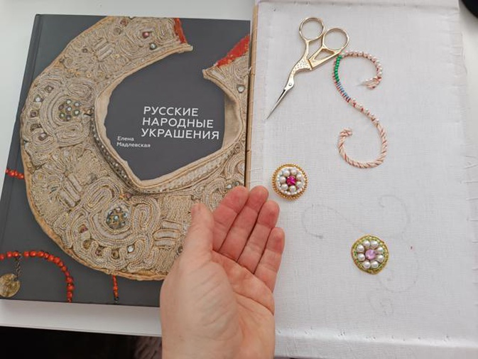 Сегодня день рукоделия. Осваиваю технику старинного русского шиться сажение по бели. Делаю запону. Но не сдержалась - превратила её в брошку)