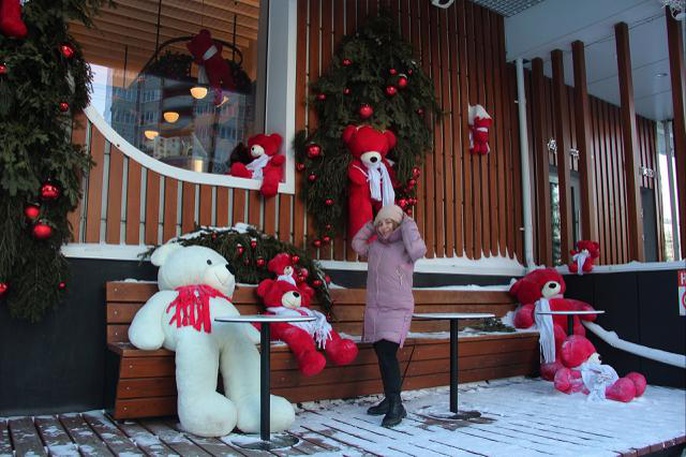 попробую поучаствовать как самостоятельный участник. Сегодня мой день начался с прекрасного, интересного места - кофейни "Делюсь добром". Обожаю красивые, интересные места, а их веранда каждый сезон радует глаз. В душе я все еще ребенок и у меня был искренний восторг от такого количества больших медведей. Ходили с дочкой, остались в приятном восторге, а мишки были рады таким крепким объятьям от моей дочки Аделины.