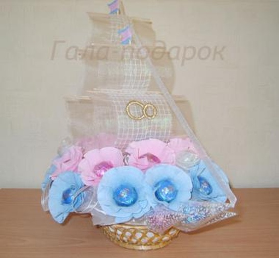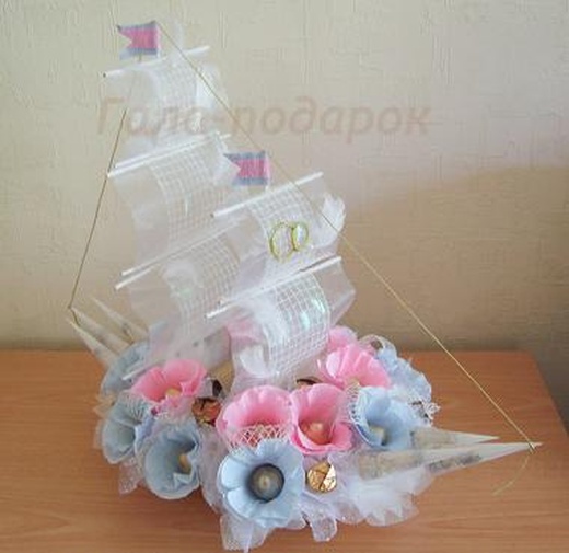 Корабль Свадебный 2-й (бело-розово-голубой) (1)