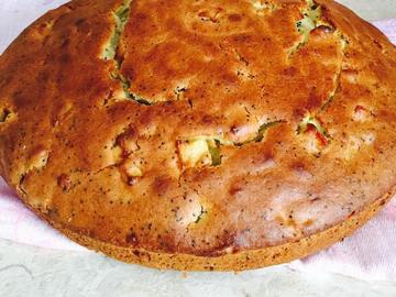 4 яйца, 1,5 с. сахара, 1 ст. мин. воды, 1 ст. растительного масла( без запаха), 4 ст. муки, 1п. разрыхлителя, 2 яблока.