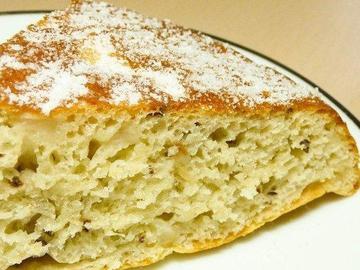 Добавьте разрыхлитель для теста и корицу. Всыпьте муку и замесите тесто. Противень или сковороду смажьте жиром и равномерно вылейте на него тесто. Выпекайте пирог при температуре 180°С около 25 мин. Я делала в форме диаметром см 25, поднимается, добавляла изюм. На мой взгляд суховато, но можно поэксперементировать, и уж если набор продуктов ограничен, а к чаю чего-нибудь хочется и быстро, то самое то)))