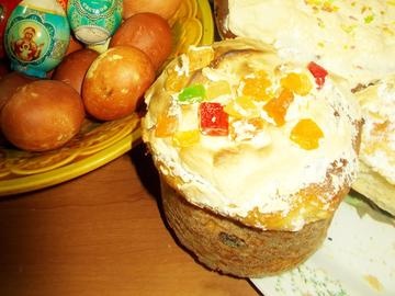 5 яиц, 200 грамм сливочного масла, 1 стакан теплого молока, сахар, соль по вкусу, разрыхлитель на кончике ножа, примерно 10 грамм сухих дрожжей, изюм ( предварительно помытый и замоченный ), ваниль по желанию. для украшения : 2- 3белка + стакан сахарной пудры, посыпка или то, что вы любите можно украсить растопленной плиткой белого шоколада.
