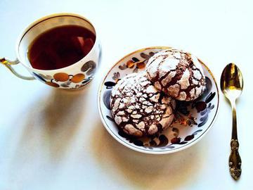 Мука 160 гр. Какао порошок 60 гр. Сахар 150 гр. Сливочное масло 50 гр. Яйца 2 шт. Ванилин 1 ч.л. Соль щепотка Разрыхлитель 6 гр. Сахарная пудра для обвалки 80 гр.