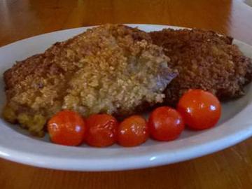 На сковороду масло, подогреть. Мясо обмакивать в кляр, потом в сухарях и на сковороду. Обжаривать по 7-10 минут с каждой стороны.