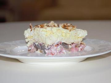 Теперь можно приступить к формированию салата. Все ингредиенты нужно выкладывать слоями.