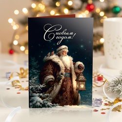 Открытка 4 шоколадки "С Новым годом! (Дед Мороз с фонарем)"