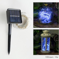 Гирлянда с питанием от солнечных элементов 10 м 100 лампочек 6 режимов / PM-5560/1 /уп 100/разноцветный