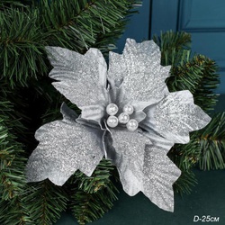 Цветок декоративный Пуансеттия 25 см серебро / NG33-16 /уп 100/600/
