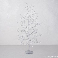 Ветка декоративная стеклярус 50 см на подставке / SA20227/2 /уп 50/200/серебро