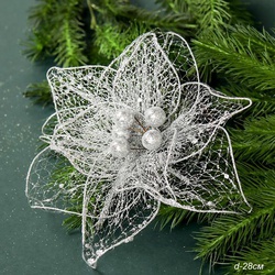 Цветок декоративный Пуансеттия 28 см серебро / NG33-20 /уп 120/600/