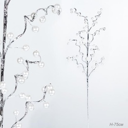 Ветка декоративная стеклярус 75 см / SA13540 /уп 360/серебро жемчуг