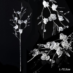 Ветка декоративная стеклярус 68 см 5 цветков / SA15807 /уп 360/серебро
