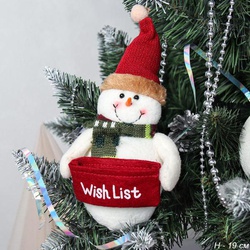 Новогоднее украшение Снеговик с мешком для подарков 19 см / NY202114 /уп 50/