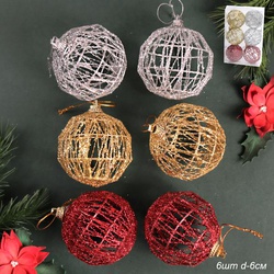 Елочное украшение Шар Ажурный 6 штук 6 см / SF2023-125 /уп 133/ зол. сер. кр.